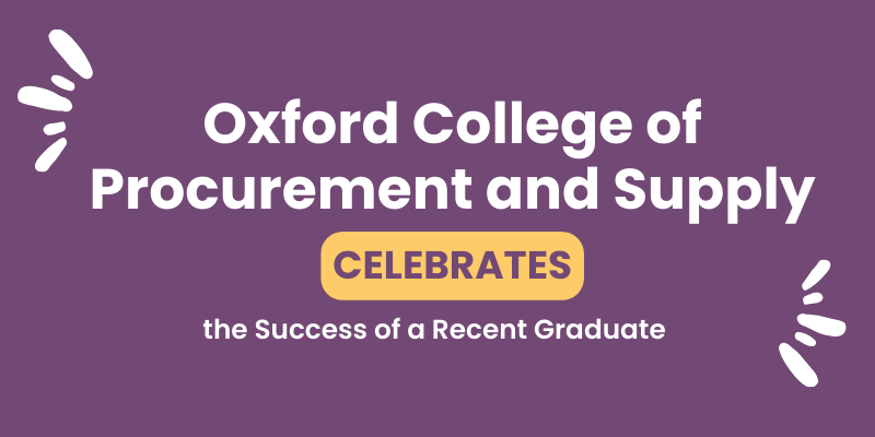 Oxford College of Procurement and Supply is celebrating the success of recent graduate Joy Jackson, who has completed the CIPS Diploma in Procurement and Supply and stepped into a higher-paying role with greater responsibilities.